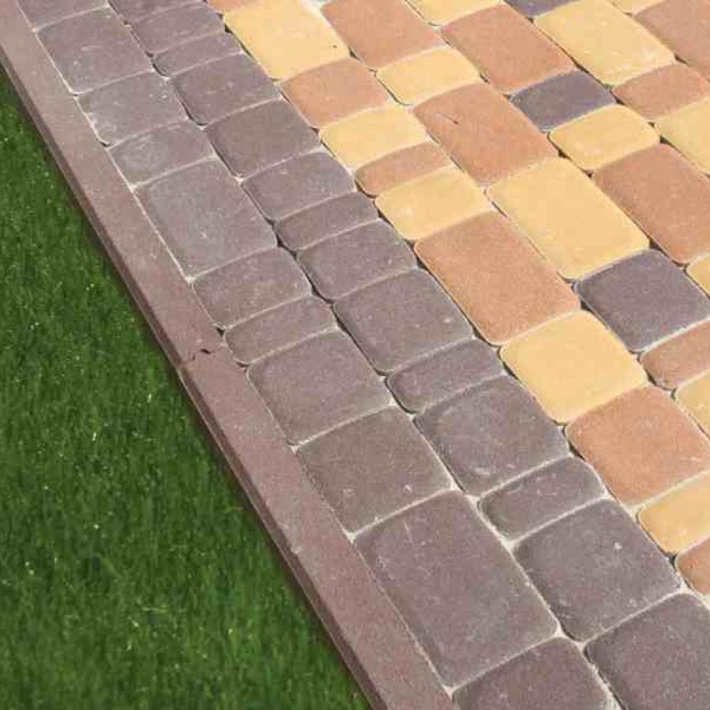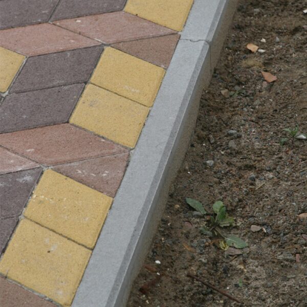 Застосування: Застосовується на дорогах з мінімальним навантаженням (пішохідні, велосипедні доріжки). Встановлюється жорстко на бетонний розчин, служить замком і упором для дорожнього покриття. Дозволяє, як піднімати рівень тротуару, так і знижувати, щодо лінії газону.